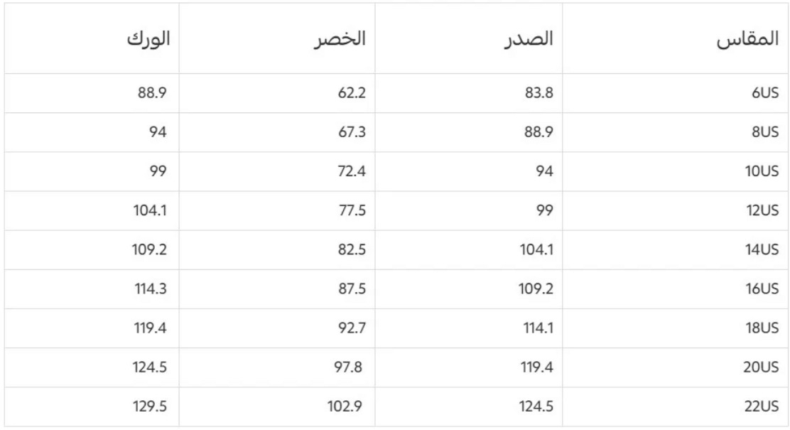 اقرأ أيضاً: جدول مقاسات الملابس s m l xl بالوزن